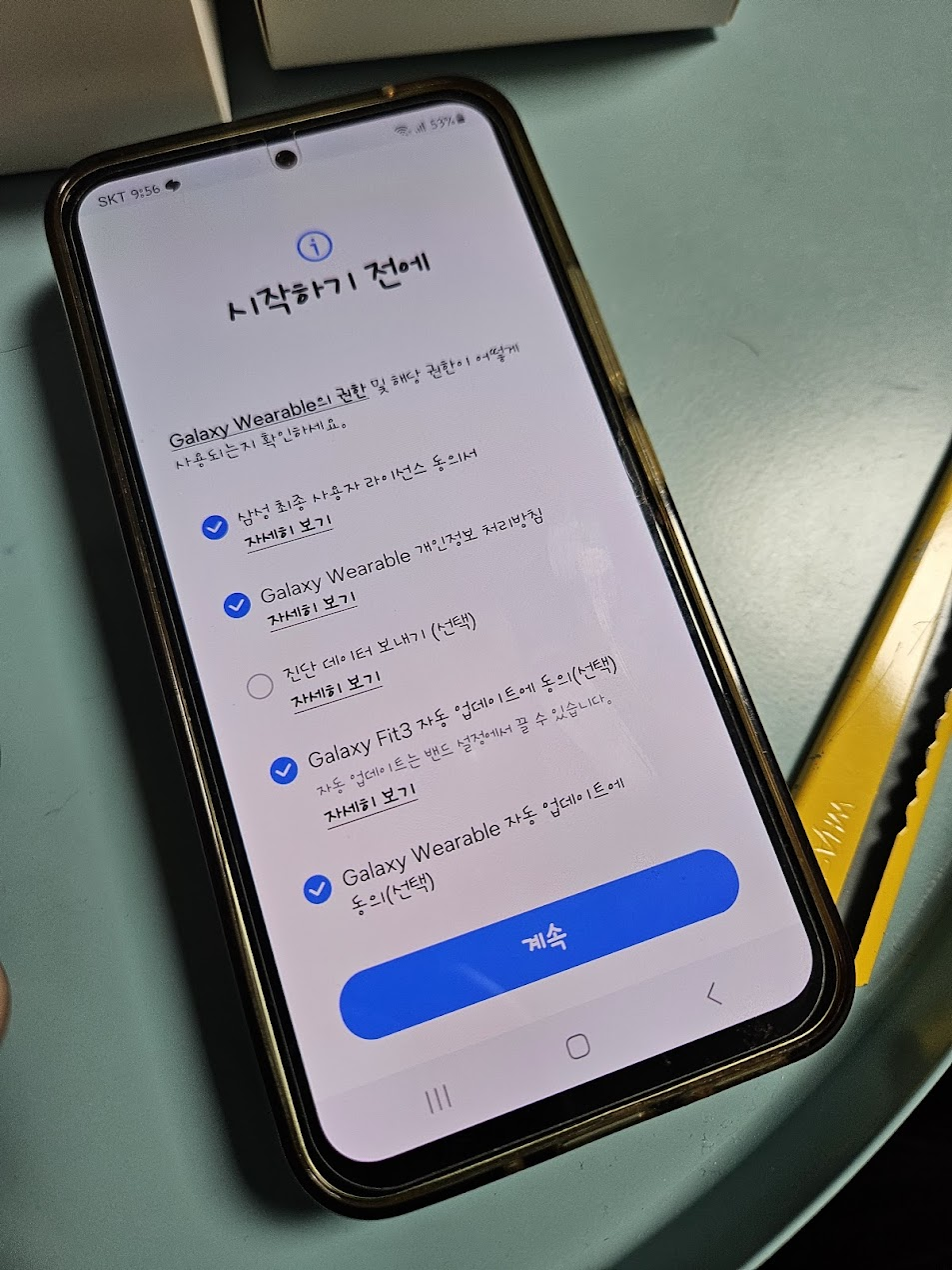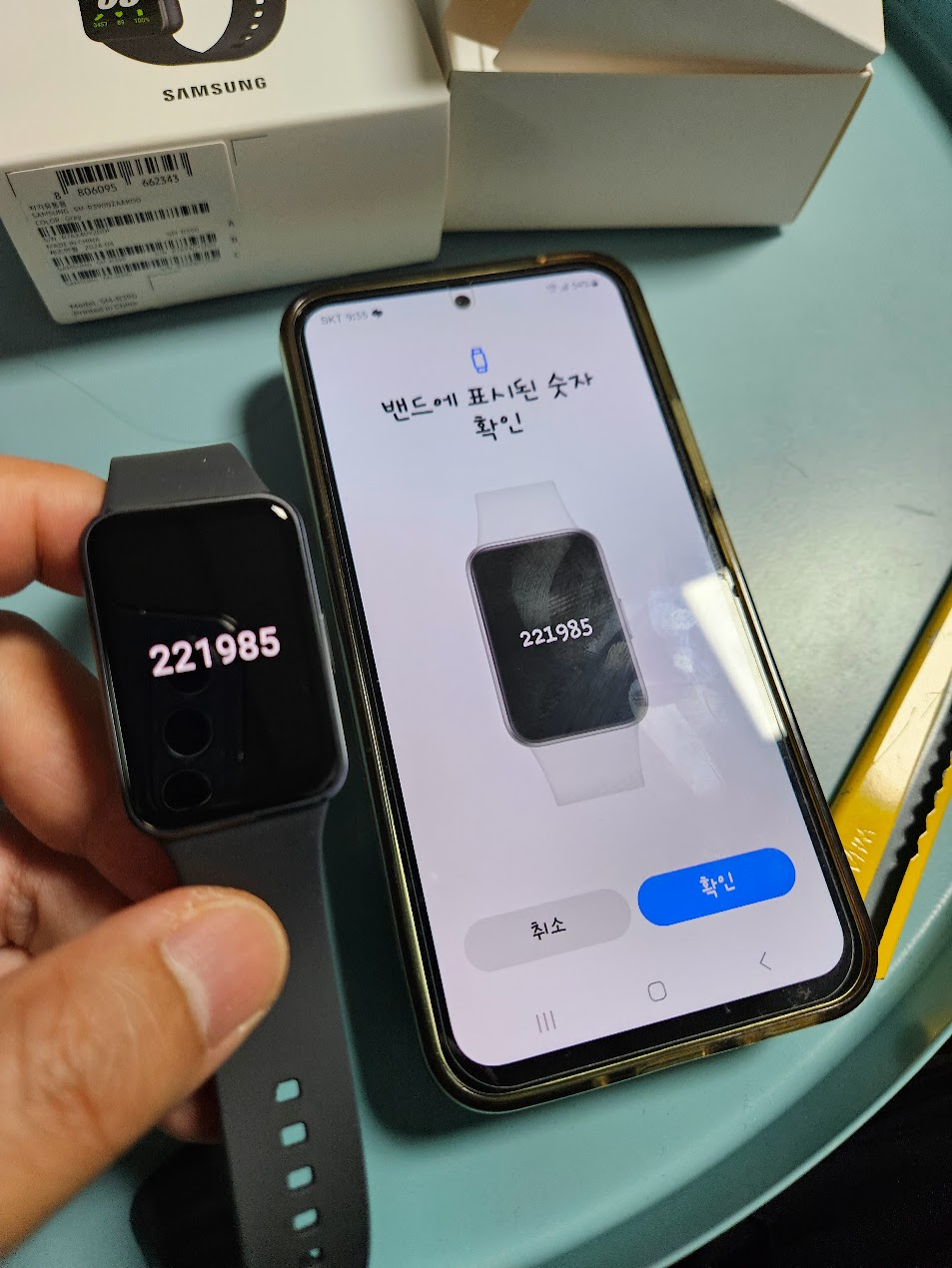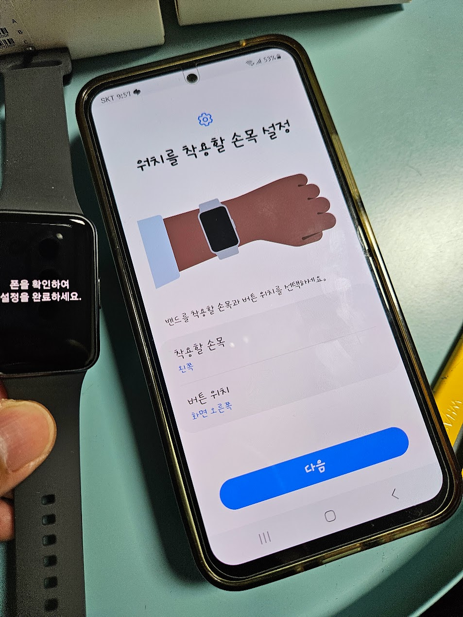 오른쪽 가운데 버튼을 길게 눌러 전원을 켜니, 전화기에서 자동으로 감지하여 연결을 진행한다.