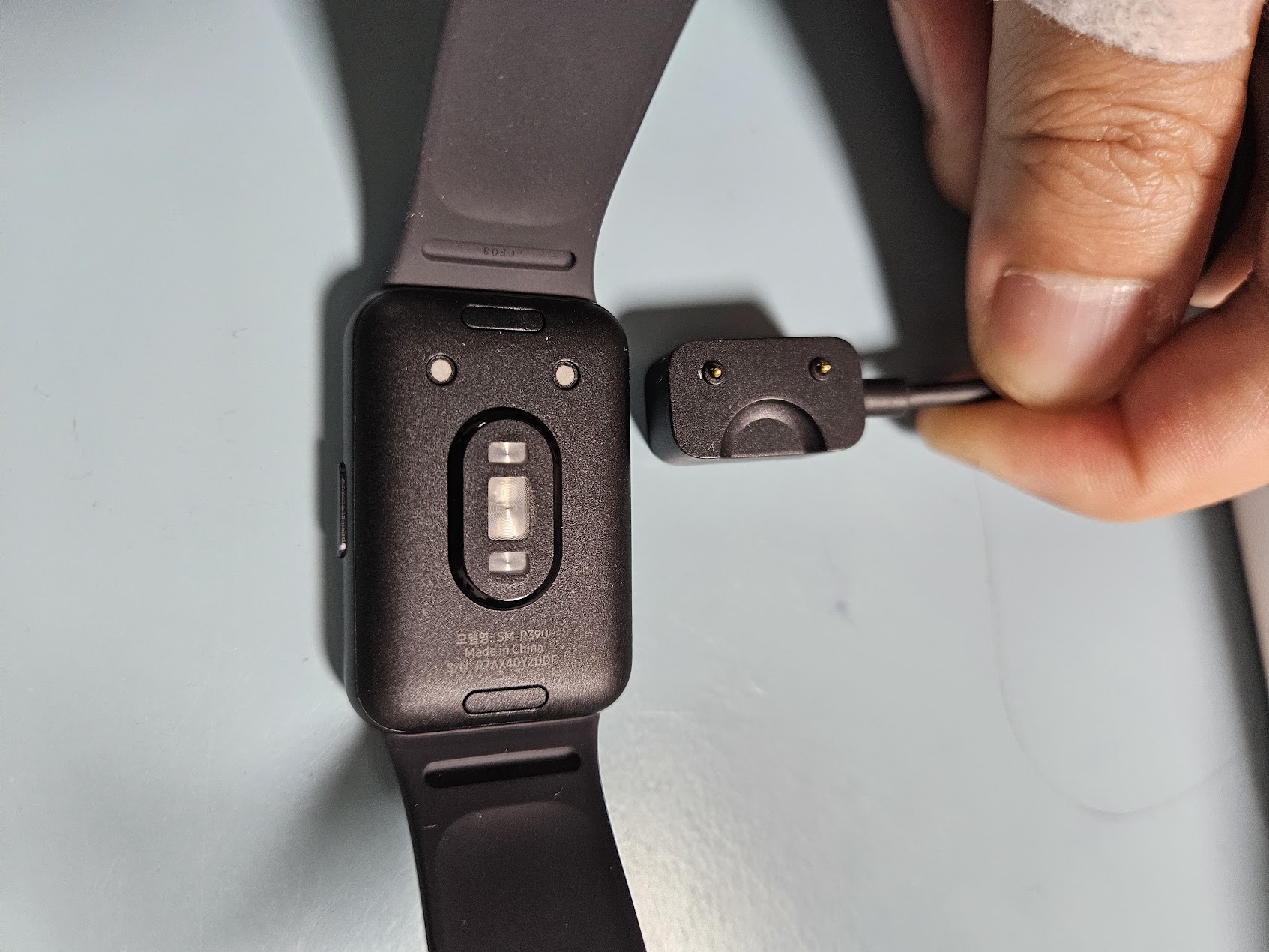 충전기와 본체는 자석으로 딱 붙어서 기존 갤럭시핏2보다 충전하기가 편리해졌다.