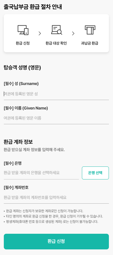 - 12세 미만 아동은 출국납부금 납부 여부 확인 필수 (납부 시 100% 환급)