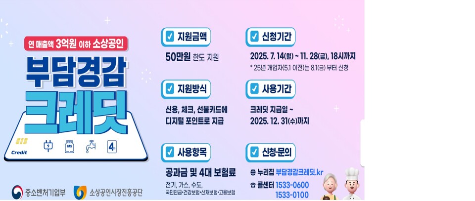 소상공인 부담경감 크레딧은 고정비 부담을 직접적으로 낮추는 실질적 정책입니다.